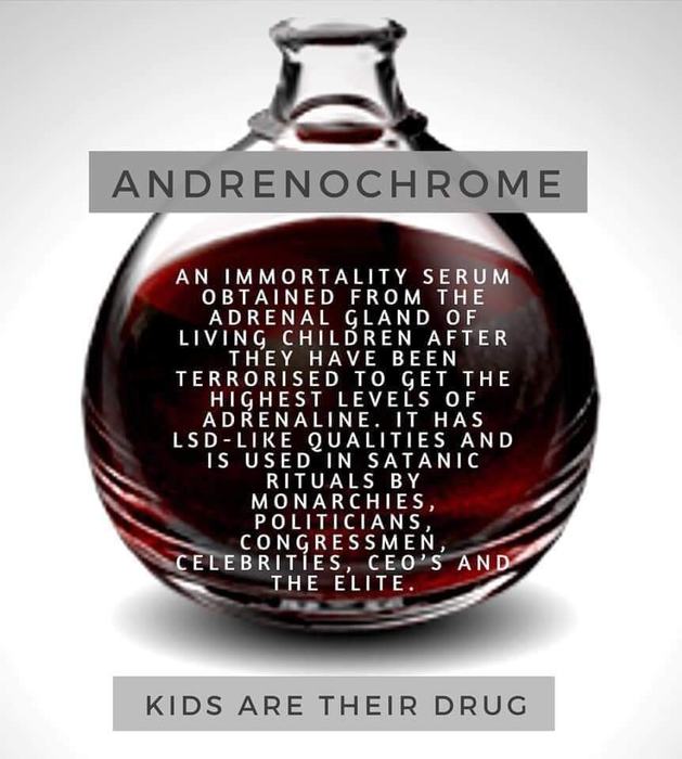 Im Sommer 2017 bestätigte der Ex-CIA-Mitarbeiter Robert David Steele, dass es im Zusammenhang mit Pädophilie das Ziel sei, die entführten Kinder zwecks „Adrenalisierung“ ihres Blutes zu terrorisieren und ihnen anschließend die Knochenmarksflüssigkeit zu entnehmen. Satanismus und Pädophilie, so Steele, gehen Hand in Hand. Dabei gehe es auch um das Trinken des Blutes der in diesen Kreisen rituell getöteten Kinder (das durch das Adrenochrom ein euphorisches „High“-Gefühl auslösen soll), um Organentnahme und Kannibalismus. Die Illuminati-Droge schlechthin!